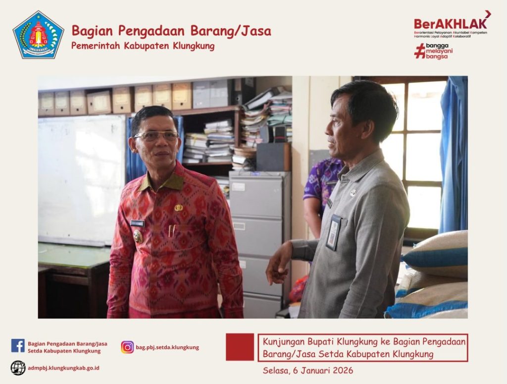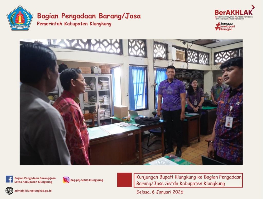Dalam kunjungan tersebut, Bupati Klungkung memberikan beberapa penekanan salah satunya adalah terkait pentingnya peran Bagian Pengadaan Barang/Jasa dalam mendukung lancarnya proses pembangunan di Kabupaten Klungkung. Kerja sama tim juga ditekankan untuk terus dipertahankan dan ditingkatkan guna meningkatkan kinerja dalam mendukung proses pembangunan demi kesejahteraan Kabupaten Klungkung.