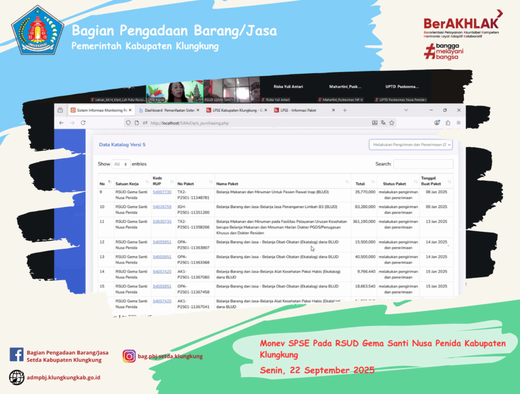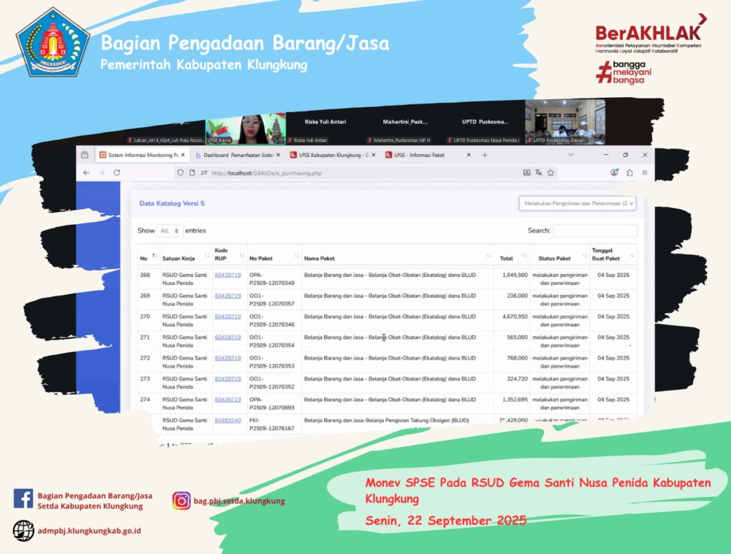 Diharapkan dengan adanya monev ini, RSUD Gema Santi Kabupaten Klungkung agar melakukan penginputan e-kontrak pada e-katalog sampai dengan penyelesaian paket dapat dilaksanakan dengan baik sampai selesai pada pencatatan non tender dan pencatatan swakelola agar segera dilaksanakan.