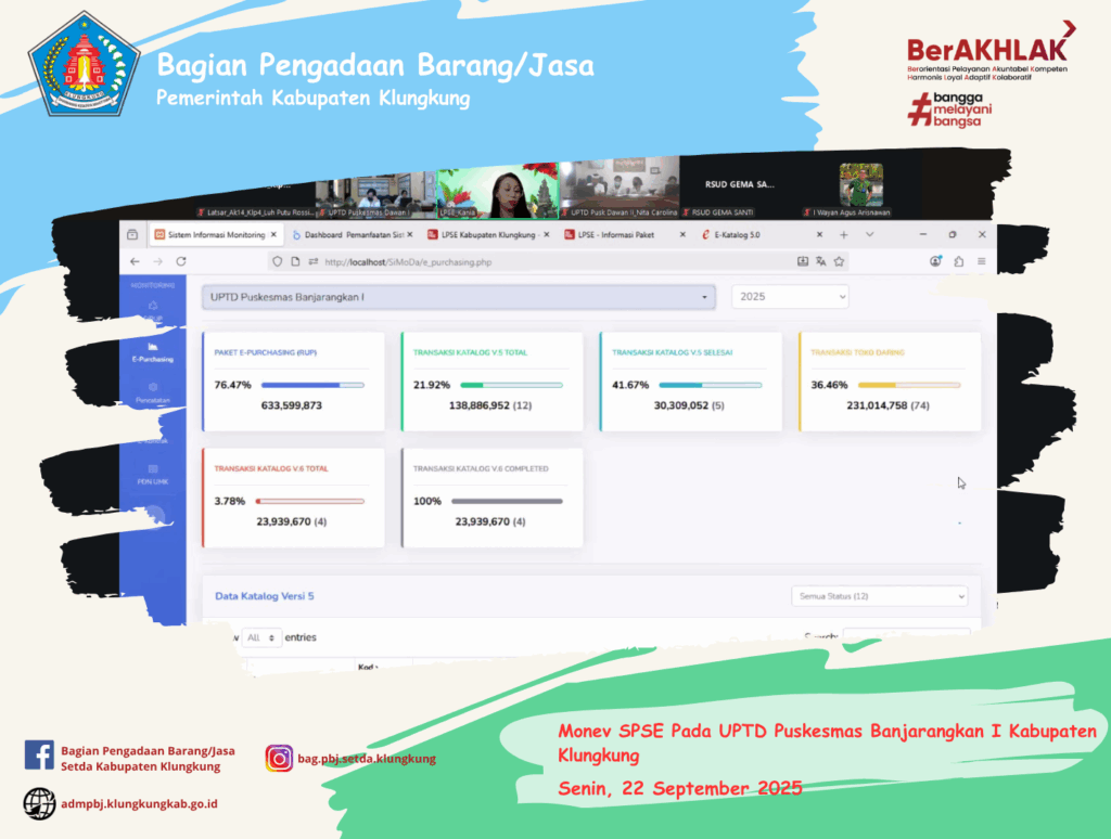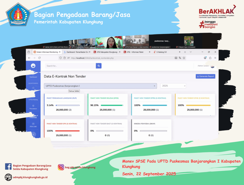 Diharapkan dengan adanya monev ini, UPTD Puskesmas Banjarangkan I Kabupaten Klungkung segera melanjutkan pencatatan non tender, pencatatan swakelola, dan paket lain yang belum tercatatkan realisasinya.