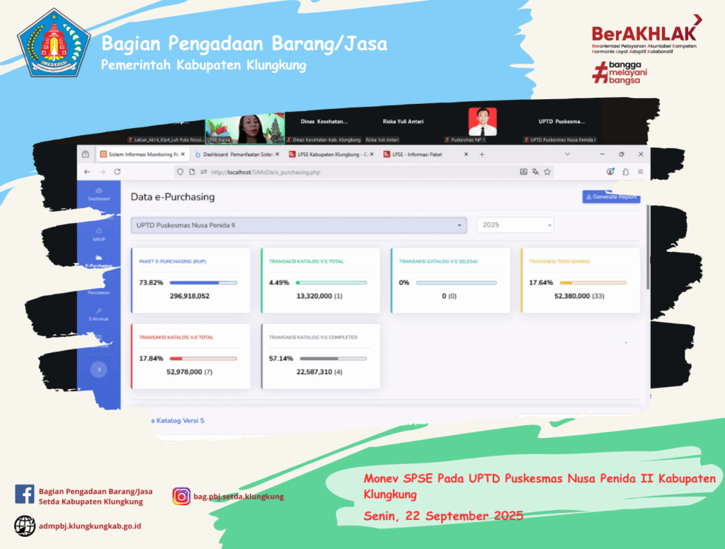Diharapkan dengan adanya monev ini, UPTD Puskesmas Nusa Penida II Kabupaten Klungkung segera melanjutkan pencatatan non tender, pencatatan swakelola, dan paket lain yang belum tercatatkan realisasinya.